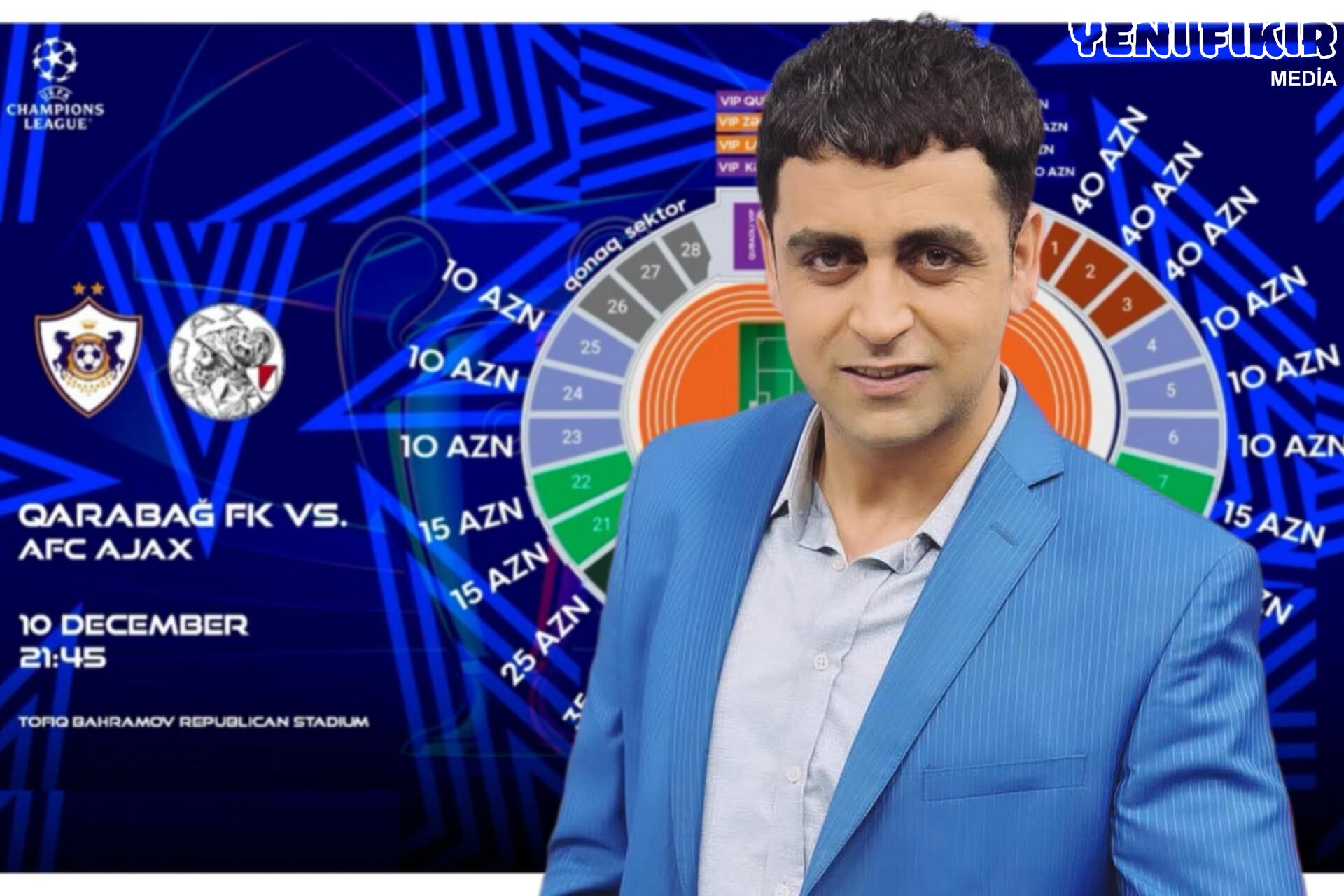 UEFA Çempionlar Liqasının əsas mərhələsi çərçivəsində dekabrın 10-da Tofiq Bəhramov adına Respublika Stadionunda keçiriləcək “Qarabağ” – “Ayaks” (Niderland) oyununun biletləri bu gün saat 15:00-da satışa çıxıb.Yenifikir.media bildirir ki,online bilet satışı zamanı yaranan çətinliklərlə bağlı aparıcı Amil Xəlil “Facebook” hesabında narazılığını ifadə edib. O, paylaşımında “Sadəcə rəzalətdir! Bu oyun niyə Olimpiya Stadionunda keçirilmir? Tamaşaçılar bilet almaq üçün böyük əziyyət çəkirlər. Böyük stadionun səs-küyü və ab-havası isə bu oyuna daha çox yaraşardı. Tıxac və digər problemlər başa düşüləndir, amma belə oyunlar ildə bir dəfə olur”, – sözlərini yazıb.