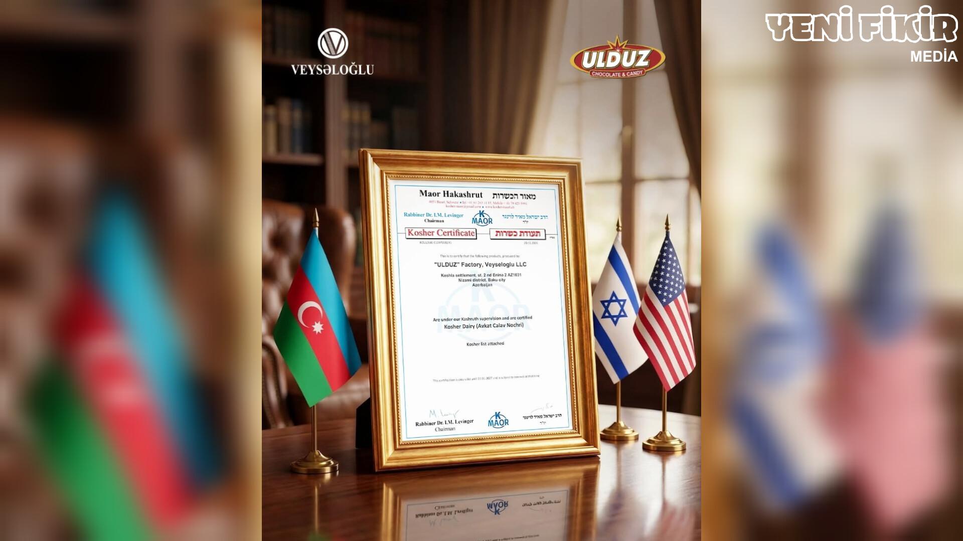 Veysəloğlu Şirkətlər Qrupuna daxil olan “Ulduz” Şokolad Fabriki növbəti mühüm beynəlxalq uğura imza atıb. Belə ki, müəssisə KOSHER sertifikatı əldə edib. Bu sertifikat “Ulduz” Şokolad Fabrikində istehsal olunan məhsulların beynəlxalq KOSHER tələblərinə tam uyğunluğunu təsdiqləməklə yanaşı, şirkətdə formalaşmış yüksək keyfiyyət və qida təhlükəsizliyi standartlarının bariz göstəricisidir.